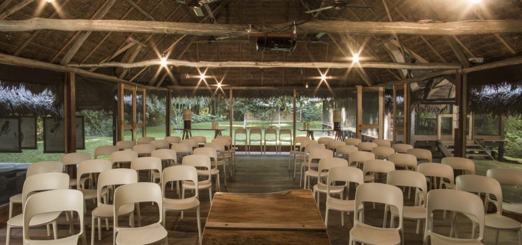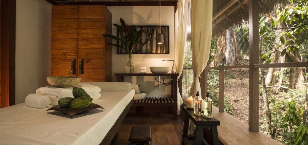in your comfy cabaña, listen to the intriguing sounds of critters that inhabit the rainforest