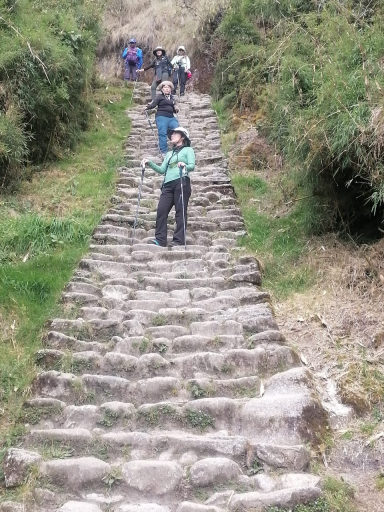 After country breakfast the hikers will be ready to leave the first campsite and start the hike following the ancient path along the left bank of the Lluyuchayoc River. Today we recommend to hike very slow and take your time because is the hardest day to climb up the pass. After 1 or 2 hours arrival to Tres Piedras (Three Stones), there is small bridge to be crossed named Wayruro (seed of good fortune) and there the hiker will stop for break and use the toilets facilities before to continue going up through cloud forest. Uphill hike for around 3 or 4 hours depending your physical condition and seeing spectacular views of Lluyucha Pampa (3680m). Continuing going up and following the amazing landscape you will get to the first and highest pass of the Inca trail, called in quechua ancient language “Abra Warmy Wañusca” or Ingles means “Dead Woman’s Pass” (4200m).