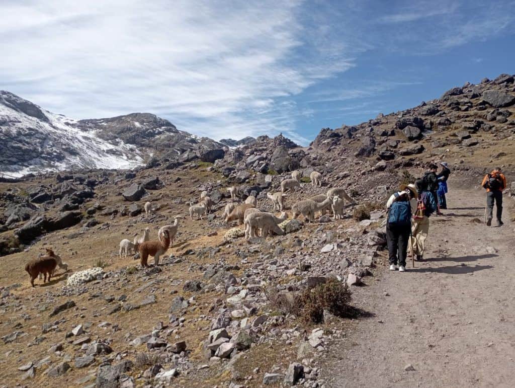 At 4:00am, you will be picked up from your hotel by our English speaking guide, and our private vehicle and you will start with this lovely drive through the South Valley. The drive to the trailhead takes 3 hours and half towards Pacchanta ( 4,300 m.a.s.l ) where we will take a short breaks for our Delicious breakfast at the community. And then we will start the hike towards the 7 lakes, we will hike for about 4 hours and 40 minutes (in total – round trip) and we will visit the following lakes: The hike will be about 5 hours and will take you along the path where we will see the different lakes like Azulcocha, Otorongo , Pucacovha, Alqacocha y Q’omercocha. That’s not the only highlight; we will also view the snow covered peaks that surround this area. These include Ausangate (6834 m.), Mariposa or Butterfly (5842 m.), Jampa (5500 m.), Pucapunta ( 5740 m), Caracol or Snail mountain (5625 m.), Tinke (5300 m.) and the whole Qayangate chain of mountains.